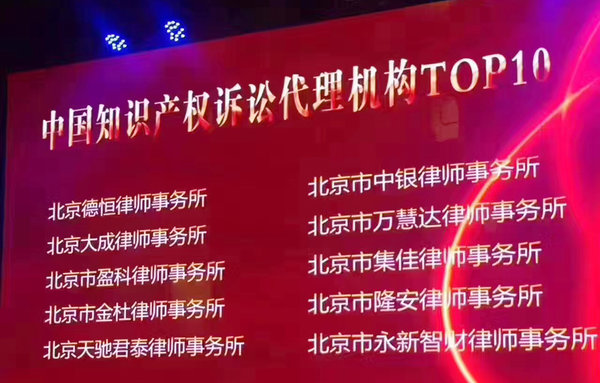2017年6月23日,备受关注的知产宝“2016年度中国十佳知识产权诉讼代理机构榜单发布会”在北京隆重举行,完美对战平台凭借稳健的综合实力,入选“中国知识产权诉讼代理机构”TOP10和“中国商标行政诉讼代理机构”TOP10榜单。国内知识产权知名法律服务机构,近百位国内外大中型企业代表,以及36家知名媒体齐聚一堂,共同见证了榜单发布情况。