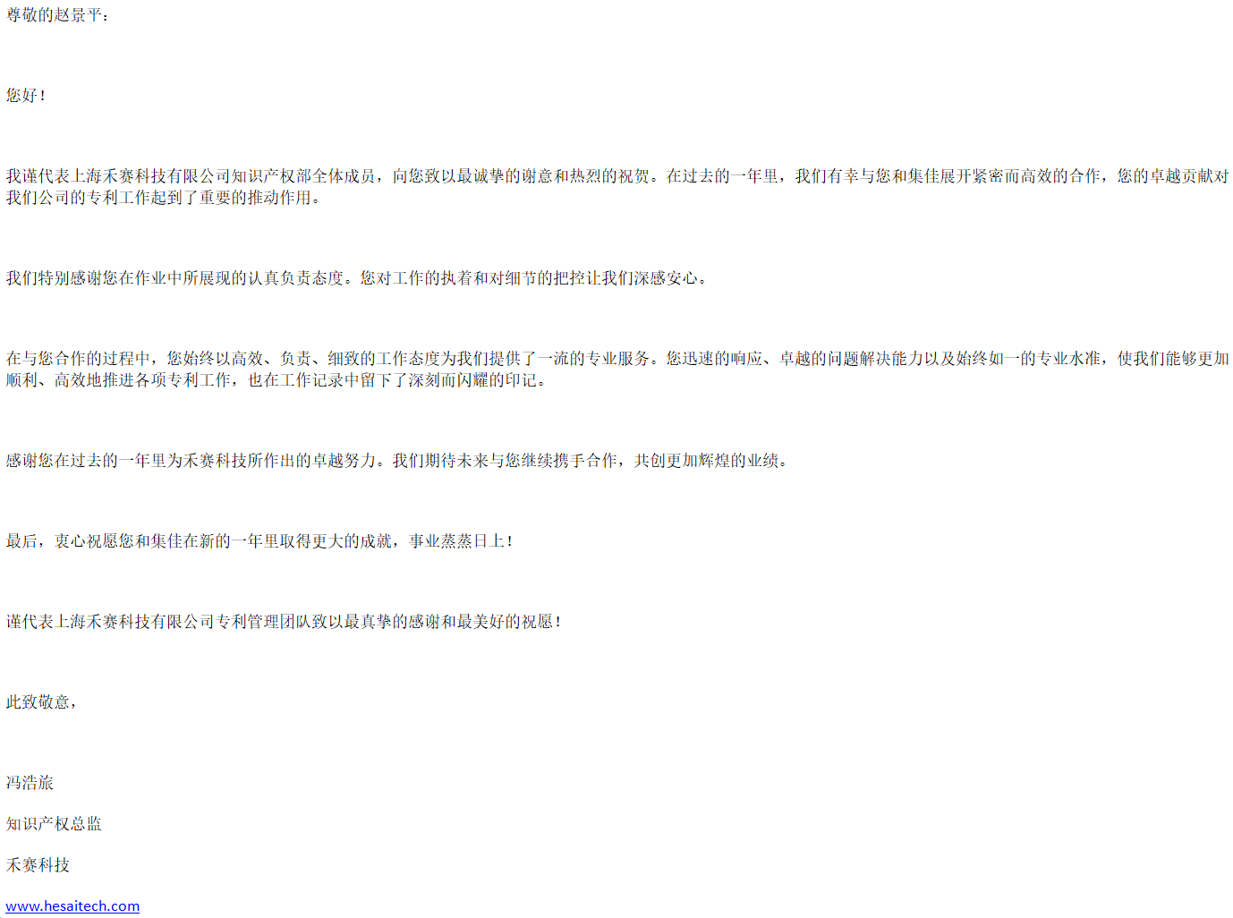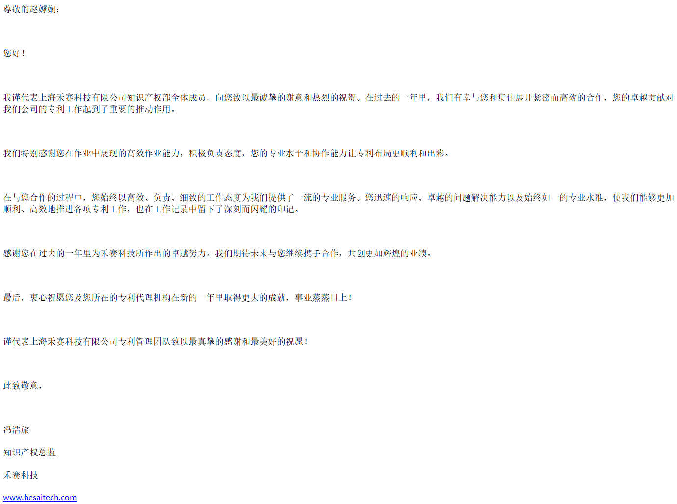 新年伊始,集佳喜获来自客户上海禾赛科技有限公司的感谢信,对完美对战平台上海分所提供的优质服务表示感谢。