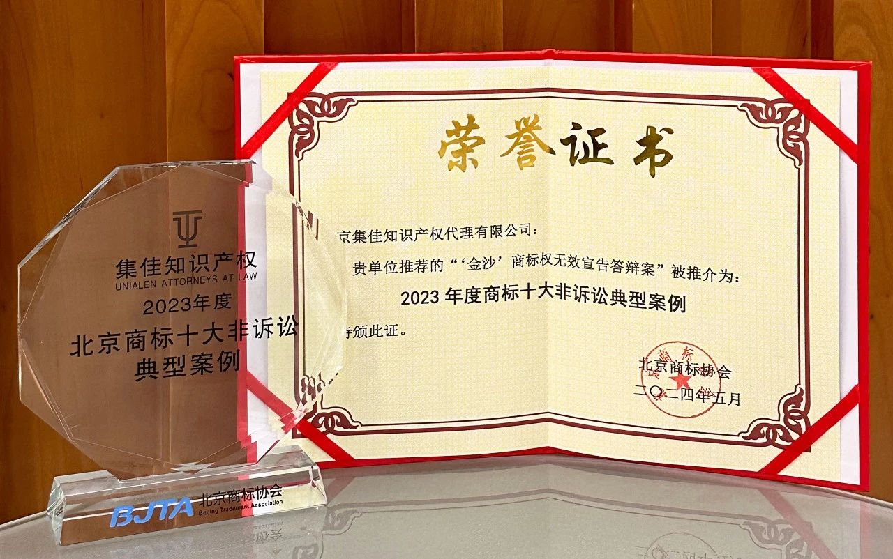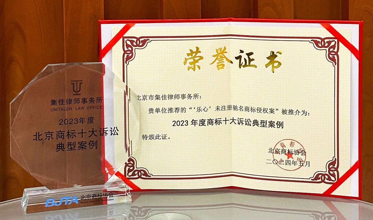 >完美对战平台>关于我们>荣誉概览>2024>集佳代理2个案例入选北京商标协会2023年度商标十大诉讼与非诉典型案例